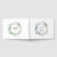 Cet élégant livre d'hôtes botanique présente des feuilles d'eucalyptus aquarellés à l'avant et une couronne d'eucalyptus à l'arrière. Personnalisez avec vos propres détails.