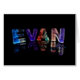 Cette image est une photographie des lettres faites main, qui changent aléatoirement, produisant les motifs et les couleurs uniques de la lumière. Le nom Evan est reflété dans l'eau immobile, avec des hexagones de flottement d'aluminium. Les lettres regardent comme si elles sont découpées de la glace ou du cristal crépitée. Si vous ne pouvez pas trouver un nom que vous voulez, veuillez obtiennent dans le contact, et je le mettrai sur ma liste. Veuillez voir le NamesInLights.co.uk pour de plus grands exemples du niveau de la photographie sur ces produits.