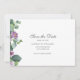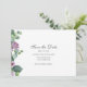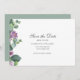 Carte Moderne Eucalyptus Botanique Script de Sauvegarde de Date. Caractérisé par une floraison violette et verte avec une typographie script.