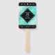 Fêtez le 11ème anniversaire de mariage turquoise avec ces fans de main élégants ! Un élégant lettrage blanc sur un marbre jaune et un arrière - plan bleu verdâtre ajoutent une touche mémorable à cette occasion spéciale et à cette étape importante. Personnalisez avec les noms et les dates du mariage du couple. Design © W.H. Sim. Voir plus sur zazzle.com/expressionsoccasions