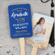 Ajoutez une touche personnalisée cool à une fête de fin d'études à l'université ou au lycée avec ces photos personnalisées de ventilateurs de main bleu royal et jaune or. Le design comprend une photo du diplômé, une typographie moderne élégante, une calligraphie manuscrite de style, et un message personnalisable lisant "Félicitations à notre diplômé". Le texte en bas inclut l'année de classe, le nom de l'école, et une ligne optionnelle pour le diplôme, les distinctions honorifiques, ou la citation inspirante préférée, merci maman et papa, ou d'autres informations. Tout le texte est simple à personnaliser. Fait une élégante idée customisée pour la fête de remise de diplômes favorise et décorations et est parfait pour afficher une photo préférée, comme une photo de cadre ou une image de la cérémonie de début. Félicitations au diplômé !