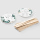 Impression avec des feuilles tropicales stylisées vertes et beige pour un mariage unique et moderne