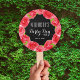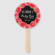 Ventilateurs à main avec vos détails et une bordure de roses rouges aquarelle contre un arrière - plan noir ou toute couleur que vous choisissez. Une façon amusante de rester cool et remercier les invités d'être venus à votre Derby party. Voir les invitations, assiettes, serviettes, étiquettes de boissons, boîtes de fête et plus dans notre magasin.