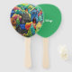Éventail Aquarelle Village Sur La Colline Avec Maisons Colo