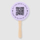 Un simple lavande de couleur lilas pastel violet "Acheter la mariée un verre" Bachelorette Party QR code rond ventilateur à main dans un style minimaliste moderne avec un détail de coeur mignon. Le modèle peut être facilement mis à jour avec votre code QR et le texte personnalisé, par exemple scanner QR pour payer par Venmo. #bachelorette #buythebrideadrink #QRcode #handfan