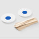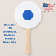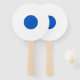 Ces fans de main arborent un grand point bleu, indiquant une protestation politique contre le président américain Donald Trump. Initialement apparu lors de l'élection présidentielle américaine de 2024 comme un signe de soutien démocrate dans une zone rouge et républicaine, le point bleu apparaît maintenant dans tout le pays pour protester contre l'administration, comme un message pour résister et voter bleu. Un point bleu apparaît de part et d'autre du ventilateur. Choix de formes de ventilateur disponibles.