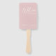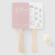 Photos de calligraphie Blush Programme de mariage Ventilateur à main Simple, moderne et minimaliste dans le style, programme de mariage de couleur blush avec cap de calligraphie amovible. Le fond du programme présente les détails de la cérémonie de mariage et comprend des icônes ou des pictogrammes en noir.
