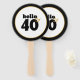 Un "bonjour 40" noir avec une couronne d'or élégant, glamour et ventilateur en papier girly pour une fête de 40ème anniversaire.