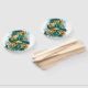 Branche avec bijoux, or et feuilles verts de Ginko biloba sur arrière - plan vert clair, peint. Ginko biloba