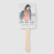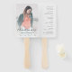 Programme de service funéraire moderne et minimaliste, éventail à main pour célébrer la vie de votre proche dans un style de design simple et épuré avec une police de caractères manuscrits et un fond gris tourterelle doux. Le programme peut être facilement personnalisé avec votre propre photo et texte pour créer un hommage spécial pour les funérailles, la commémoration ou la célébration de la vie de votre proche. L'image affichée est à des fins d'illustration uniquement et doit être remplacée par votre propre photo. L'image de remplacement montre une jeune femme aux longs cheveux bruns ondulés ombrés portant une veste en cuir, un haut en dentelle orange et un jean blanc. #funérailles #ordredujour #éventailàmain