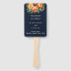 Séjournez cool et élégant lors de votre journée spéciale avec ce programme de mariage floral Vintage personnalisé Fan à la main! Doté de roses bordeaux et de beurre jaune et de pivoines aux feuilles verts sauge, cet élégant design est placé contre un arrière - plan bleu marine chic pour une touche chaleureuse et romantique. L'ordre de cérémonie est magnifiquement affiché dans une police moderne élégante et script en crème douce, complétant parfaitement votre mariage sur le thème du jardin d'été. Un détail pratique et charmant pour vos invités, ce ventilateur de main programme de mariage est à la fois fonctionnel et un charmant gardien de votre grand jour.