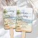 Cette élégante carte de programme de cérémonie de mariage avec une plage d'aquarelle et des palmiers peut être facilement customisé.