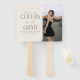 Stay cool and stylish during the celebration with elegant handheld graduation fans. One side features the phrase "Cheers to the Grad" in a sophisticated minimalist design in modern cream and charcoal gray, complete with personalized details such as the graduate's name, year, and school. The other side showcases a cherished photo of the graduate. Perfect for keeping guests comfortable in stuffy auditoriums or under the hot sun, these fans double as a unique keepsake to commemorate the special day. © Kimbellished, LLC