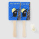 Éventail Chouette noire dans l'arbre étoile de lune jaune