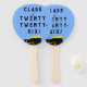 Fête de remise de diplômes créative et tenue de remise de diplômes avec citation drôle Classe de 2025 et casquette noir avec goût or sur arrière - plan bleu clair.