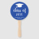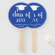 Ventilateurs minimalistes de fin d'études avec un design simple et classique avec un grand casquette et "classe de l'année" dans une épaisse écriture manuscrite avec le nom du diplômé en blanc sur un arrière - plan bleu. La couleur arrière - plan peut être changée en n'importe quelle couleur. Un style traditionnel avec une touche moderne pour une jeune diplômée.