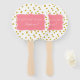Confetti en or métallique avec ventilateur de la main de fête d'anniversaire rose. Le design comprend un or métallique sur motif confetti blanc et une forme rose au milieu avec votre texte personnalisé.
