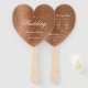 Un ventilateur de programme de mariage simple mais élégant en forme de coeur pour un thème mariage en cuivre. Les titres et les noms (et les initiales) de la mariée et du marié sont écrits dans un élégant script calligraphique, le reste en casquette. L'arrière - plan est un faux tonneau métallique, le texte est blanc. A l'arrière, il a sur le côté gauche le programme de cérémonie mariage et, sur le côté droit, la fête de mariage (avec 2 colonnes différentes pour l'équipe mariée et l'équipe mariée). et sous eux un court message Merci.