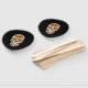 Éventail Crâne à sucre rose jaune sur noir