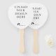 Ce ventilateur imprimé à main est le moyen idéal de fournir des informations sur le programme de mariage à vos invités et de les garder cool! Les ventilateurs sont proposés en quatre options de forme : pagaie, coeur, rectangle ou rond et sont vendus en séries de 10. La carte stock est disponible en blanc ou en écru et est assez lourde pour offrir beaucoup de soulagement à vos clients chauds. Un assemblage simple est requis. Les poignées en bois et 4 points de colle sont inclus par ventilateur. Vous pouvez les acheter pré-assemblés pour un supplément si vous n'avez pas assez de temps ou de patience ! ・ Cliquez sur le bouton bleu "Personnaliser" ou "Modifier la conception" ci-dessus et cliquez sur "modifier" ou "modifier l'image" et suivez l'invite pour télécharger votre fichier image. ・ Ajoutez autant d'images et de texte que vous le souhaitez. ・ Une fois que vous avez terminé, entrez la quantité désirée et commandez!