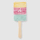 Ventilateur de main unique, amusant, coloré de la fête de la crème glacée sur le thème de la fête des anniversaires de enfants conçu pour ressembler à un gâteau scoopé de cône de crème glacée popsicle. Conçu en rose, jaune et turquoise coloré amusant avec un confetti, des arrosages et un motif design pois polka. Message typographique amusant "Allison Screams, You, Scream, We All Scream for Ice Cream" Le nom peut être changé pour un design unique personnalisé de ventilateur d'anniversaire. Le dos comporte une Initiale qui peut également être changée. Ajoutez une unicité à vos petits fêtes d'anniversaire avec cette soirée unique de fête d'anniversaire cône glacé à la main popsicle fan design. Nous avons une large sélection d'objets d'anniversaire assortis pour ce thème de fête d'anniversaire de salon de crème glacée.