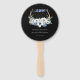 Fleurs de cristaux de lune Boho Mariage métaphysique Ventilateur à main avec arrière - plan noir. Cet ensemble de faire-part de mariage Boho comprend un croissant d'aquarelle et des phases de pleine lune avec des fleurs blanches et bleues, des points de cristal d'or, de la verdure et des bois. Un choix parfait pour une union spirituelle mystique ou métaphysique, un jeûne à la main ou un mariage. Les couleurs et les polices Arrière - plans peuvent facilement être modifiées pour répondre à vos besoins.