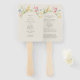 Gardez vos invités au frais et informés avec cet éventail de main de programme de mariage charmant, magnifiquement conçu avec des fleurs sauvages délicates dans des teintes printanières. Parfait pour les cérémonies en plein air, cet éventail à pagaie double face présente l'ordre de votre cérémonie et les détails de votre cortège de mariage dans une typographie élégante. Un joli souvenir et une touche fonctionnelle pour les mariages rustiques, de jardin ou bohèmes.