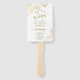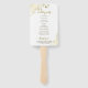 Ces magnifiques ventilateurs à main sont conçus pour servir à la fois de refroidissement pour vos invités, et un programme de mariage. L'élégant design présente une calligraphie en or sur un arrière - plan blanc classique avec des garnitures en dentelle dorée ornée dans les coins. Il y a de l'espace pour lister l'ordre de cérémonie ainsi que la fête de mariage et une courte note de remerciement. Merveilleux souvenir de votre journée spéciale.