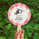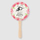 Un ventilateur à main avec une dame avec un casquette avec votre nom et date de fête avec une bordure de roses contre un arrière - plan léger en ivoire. Une façon amusante pour les clients de rester cool. CORRESPONDANCE d'objets dans notre collection.