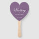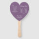 Un ventilateur simple mais élégant en forme de coeur pour un programme de mariage violet poussiéreux couleur mariage. Les titres et les noms (et les initiales) de la mariée et du marié sont écrits dans un élégant script calligraphique, le reste en casquette. L'arrière - plan est pourpre poussiéreux, le texte est blanc. A l'arrière, il a sur le côté gauche le programme de cérémonie mariage et, sur le côté droit, la fête de mariage (avec 2 colonnes différentes pour l'équipe mariée et l'équipe mariée). et sous eux un court message Merci.