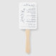 This wedding program hand fan features a deep navy blue& with color theme. Delicate eucalyptus springs in fine line art add a soft botanical accent. The design is elegant, modern, and easy to read. This hand fan program is ideal for outdoor or summer weddings and pairs perfectly with a navy blue and greenery wedding theme.