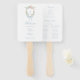 Ce programme sert de ventilateur portatif. Idéal pour un mariage programmé pour une journée chaude. Cette conception de programme a une crête florale aquarelle entourant votre monogramme et comprend l'ordre des événements et les détails de la fête nuptiale. Cette conception est coordonnée avec d'autres modèles de la collection Mariage Elegant Floral Wreath Crest