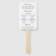 Ventilateur de main du programme de mariage moderne avec un design simple avec vos noms dans un élégant script manuscrit en haut à gauche et vos détails mariages en alignement droit en bas à droite, sur votre photo préférée. Le côté arrière a votre ordre de cérémonie, de mariage et message de remerciement en noir sur un arrière - plan blanc. Le design minimaliste est agrémenté d'une touche romantique grâce au lettrage à la main chic.