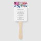 Programme de mariage floral moderne Ventilateur à main avec des pivoines et des roses en rose gras et vibrant avec des sprigs de verdure dans les tons turquoise et bleu. Ce programme de mariage éclatant Les fans à la main dans les couleurs des bijoux sont parfaits pour un mariage d'été.