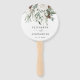 Élégant programme de mariage à feuillage persistant hiver festif Ventilateur à main. Des éléments correspondants sont disponibles.