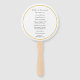 Élégant programme de mariage main fans avec votre monogramme en faux or et vos détails en italique sur un arrière - plan blanc. Ces ventilateurs de main fourniront à vos invités la commande de service et sont parfaits pour un mariage extérieur.
