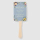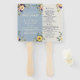 Élégant, moderne, rustique, botanique, bleu poussiéreux programme de mariage ventilateurs main avec fleurs d'aquarelle, tournesols et verdure.