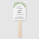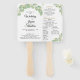 Créez d'élégants programmes de mariage eucalyptus sur place ventilateurs pour vos invités. Le modèle de texte moderne et de script facilite la personnalisation.