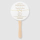 Ventilateur à main simple, élégant, minimaliste, blanc, programme de mariage avec coeur en feuille d'or et écriture moderne.