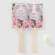 Programme de mariage Les fans sont un choix populaire pour les cérémonies d'été. C'est une façon élégante de garder un cool mariage et de fournir les détails importants comme vous dites "je le fais". Tenir votre événement à l'extérieur ? Il n'est pas surprenant que les gens aient besoin de quelque chose pour les garder cool. C'est pourquoi un éventail de main de programme de mariage personnalisé est le cadeau parfait à donner à votre mariage. Personnalisez et créez en ajoutant et en modifiant le texte dans les champs fournis. Vous pouvez modifier le style de police, la taille et la couleur, ainsi que le type de papier.