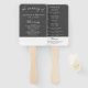 Ventilateur de main élégant et moderne gris programme de mariage. Le design se décline dans d'élégants tons gris foncé et blancs et dans un style moderne. Personnalisez tout le texte sur le ventilateur.