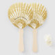 Créez vos propres ventilateurs de main chic et élégants avec un design de coquillages qui vous permettra de garder les invités cool à votre mariage sur la plage extérieure, fête d'anniversaire, remise des diplômes, ou tout événement spécial sur le littoral ou le coquillage. Les ventilateurs papier avec poignées en bois peuvent être personnalisés facilement avec l'éditeur de design où vous pouvez ajouter un monogramme, nom, initiales, ou ajouter votre propre texte personnalisé pour créer des programmes de cérémonie et des faveurs. Les amateurs de mariages sont parfaits pour une destination tropicale extérieure avec un thème doré chic et minimaliste qui fonctionne pour des événements formels ou décontractés selon les polices et les couleurs que vous ajoutez au design. C'est un modèle modifiable, de sorte que tous les éléments de conception peuvent être déplacés, enlevés, ou remplacés par différents coquillages de plage ou des motifs d'icônes nautiques et côtiers.