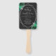 Cet élégant ventilateur de programme de mariage présente un cadre géométrique argenté décoré de bouquets floraux vert émeraude et argenté. Le texte apparaît dans une élégante écriture gris argenté et des polices de caractères sur un arrière - plan non noir.