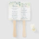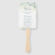 Ventilateur de programme de mariage élégant avec des feuilles d'eucalyptus et de la verdure avec une touche de bleu et des taches de fausse parties scintillant d'or, sur un lavage pastel aquarelle. Vos détails sont en vert foncé avec les événements de cérémonie sur le devant et la fête de mariage et message de remerciement sur le dos. Ce design simple et rustique est idéal pour un mariage à thème botanique en été.