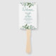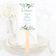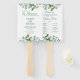 Ce ventilateur de programme avec de l'eucaluptus vert sauge est un excellent moyen d'accueillir vos invités et de les garder cool par temps chaud. Le côté avant les remercie d'être venus. L'autre côté montre les détails de votre cérémonie et de votre fête de mariage. Tous les champs peuvent être customisés à vos spécifications