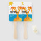 Vacances d'été à la Réunion Familiale Vacances à la main, avec nom de famille personnalisable et palmiers. Le design montre soleil, palmiers, horizon bleu et plage de parties scintillant dorée, avec une typographie audacieuse. Customisez simplement le nom sur le devant. La conception est répétée au contraire. Profitez du soleil d'été avec ces ventilateurs de main pour vous garder cool. Un pour chaque membre du groupe. Obtenez des cadeaux assortis pour toute la famille pour faire de votre prochain voyage de réunion de famille un jour férié à retenir.