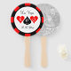 Fan main de puce de poker personnalisé pour Las Vegas ou mariage de thème de jeu. Big poker puce marqueur ventilateur de pièce contre la chaleur pour le mariage de Sin City. Disque de jeu personnalisé avec des initiales monogrammées de nom de mariée et de couple marié. Jouer carte convient à la conception avec le roi et la reine des coeurs et des pique. Design modèle élégant de typographie de script avec nom de destination d'emplacement personnalisé. Jeux de casino amusant jeux d'argent à thème de la fête et des faveurs pour les clients. Couleurs noir blanc et rouge. Téléchargez votre propre photo au dos.