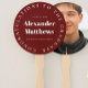 Félicitez et célébrez votre grade masculin et restez cool en même temps. En plus, utilisez ce ventilateur de grade personnalisé pour enregistrer votre siège de cérémonie de remise de diplômes! Le design avant a le nom de la grade dans une police moderne audacieuse, classe de l'année, le nom de l'école et le dicton "félicitations au diplômé" dans la typographie moderne mis contre un arrière - plan de votre choix de couleur (montré en bordeaux mais peut être changé à votre couleur d'école en utilisant le menu personnaliser it). Vous pouvez également modifier la couleur du texte pour qu'elle corresponde aux couleurs de l'école. L'arrière du ventilateur présente la photo de votre grand. Ventilateur de cérémonie de remise de diplômes moderne et élégant qui est aussi un excellent souvenir du grand jour de votre grand-père.