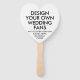 FANS de MARIAGE BLANC HEART 6" personnalisés imprimés (ensembles de 10) Modèle blanc. Concevez, créez, créez les vôtres. Votre photo mariage, image, message, texte, nom de mariée et de mariée, logo, graphisme, en couleur pleine imprimer individuellement sur les deux côtés du ventilateur. 5,75 po de diamètre. Disponible en carton blanc et écru (personnaliser à n'importe quelle couleur). Assemblage simple requis - poignées en bois et 4 points de colle par ventilateur inclus (disponible pré-assemblé pour un supplément). Disponible Arrondi, en forme de Coeur, Pagaie ou Rectangle. Idéal pour les mariages, mais aussi pour un Sweet 16, anniversaire de Quinceanera, ou tout événement chaud, d'été ou de plein air, et pour le marketing d'entreprise et d'entreprise ou d'utilisation promotionnelle.