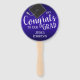 Arrière - plan dégradé bleu amusant avec tableau noir et texte de script. Lit "Félicitations à notre Grad" Année de graduation option avec nom personnalisé. Le dos du ventilateur a une option photo de couverture complète. Tout le texte peut être modifié et ajusté.